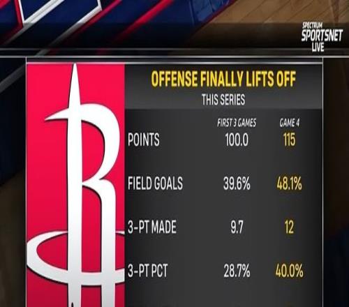 懂球帝:《火箭115-96轻取湖人1-3挽救赛点,申京19+6,詹姆斯10分9助8失误》2026年4月27日虎扑体育:《全面提升!火箭G4得分、投篮&三分命中率、失误控制均有进步》2026年4月27日
