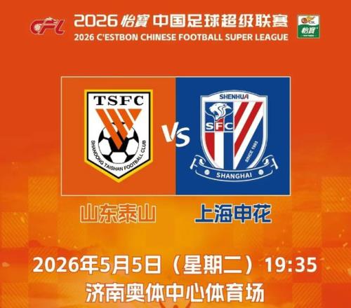 5月5日(星期二)19:35,在2026赛季中超联赛第10轮的一场焦点对决中,山东泰山坐镇主场济南奥体中心体育场,迎战上海申花。4月28日,山东泰山足球俱乐部早早发布了这场比赛的票务公告。